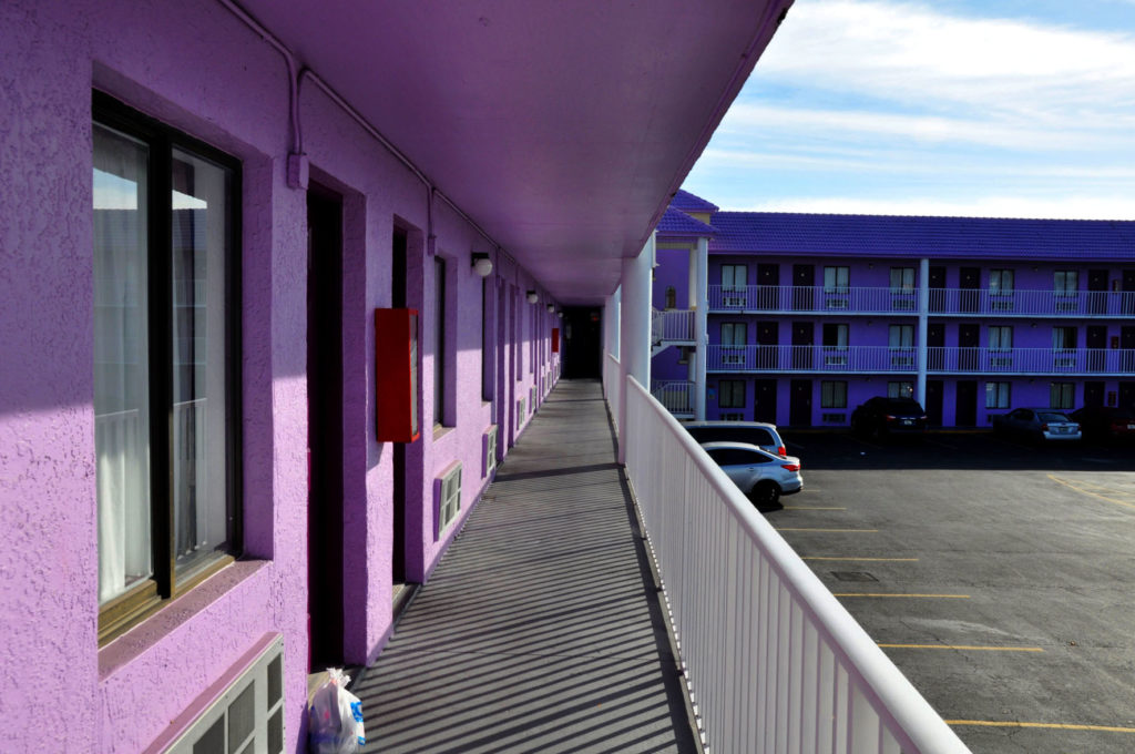 Motel, w którym kręcono film ,,Projekt Floryda” znajduje się niedaleko Old Town i wyróżnia się na tle innych, które do tej pory widzieliśmy. Dzieciaki z filmu nazywały go the purple place. Fiolet widać już z daleka i nie sposób pomylić z żadnym innym obiektem. Nie skusiliśmy się jednak na ten nocleg po królewsku przy West Irlo Bronson Memorial Highway pod numerem 5055. Ale fioletowe mury obeszliśmy sumiennie.