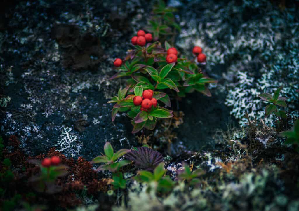 Partridgeberry (borówka brusznica / borówka czerwona) z kolei trochę przypomina żurawinę i podobno ma niesamowite właściwości zdrowotne.