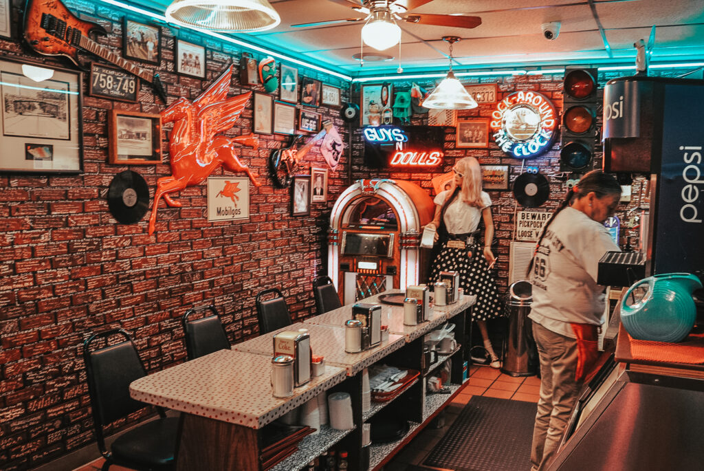 Tuż za rzeczką w Pops66 (660 U.S. Rte 66, Arcadia) serwują bowiem wielką dolewkę kawy (botomless cup). Ale tym razem nie pijemy kawy, bo miejsce to gazowanymi napojami stoi i to dosłownie. Przed budynkiem stoi ogromna instalacja na kształt butelki ze słomką (66 stóp wysokości), kolorowo oświetlona co pięknie się prezentuje wieczorową porą. Wybór smaków jest imponujący. Tu także można zjeść tanio i dobrze oraz zakupić pamiątki.