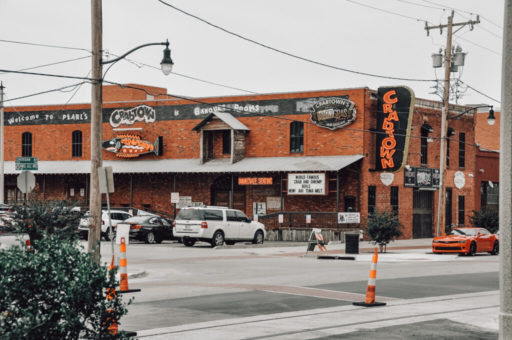 Mnóstwo restauracji i knajpek oddzielonych kanałem po którym pływa wodne taxi to doskonała okazja do odkrywania oficjalnych dań Oklahomy (The official state meal of Oklahoma). W ich skład wchodzą: smażona okra, grillowana wieprzowina, smażony stek z kurczaka, biscuits (szybkie bułki obiadowe wypiekane bez drożdży) z sosem ,,kiełbasianym”, dynia, kukurydza, chleb kukurydziany, grysik kukurydziany, czarnooka fasolka (black-eyed pea), truskawki i ciasto z orzechami pikan. Menu uchwalono w 1988 roku w porozumieniu z ministerstwem rolnictwa i innych powiązanych stowarzyszeń i producentów ze stanu Oklahoma. Z założenia miało także odzwierciedlać kulturowe korzenie mieszkańców stanu. My się skusiliśmy na przepyszny pecan pie.