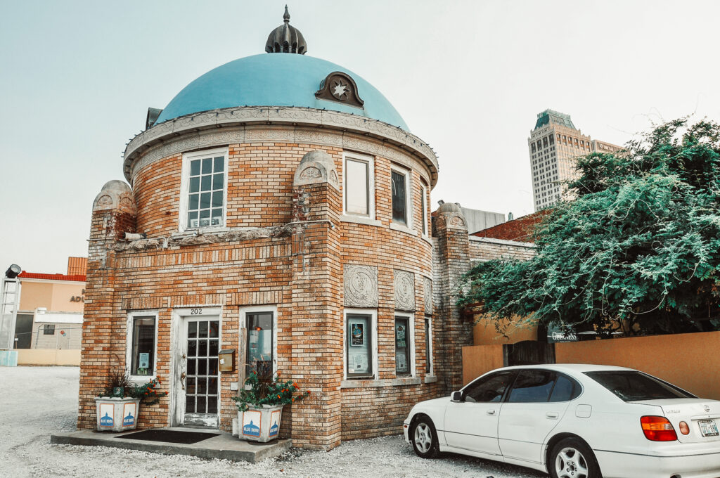 Dalej wjeżdżamy do Tulsy. Ta wita nas licznymi fasadami w stylu art deco i charakterystyczną kopułą byłej stacji paliwowej The Blue Dome, zbudowanej w 1925 roku (320 E 2nd St.). Ówczesna prasa opisywała ją jako „Największą i najbardziej kompleksową stację benzynową w Tulsie i jedną z najpiękniejszych na całym południowym zachodzie”. Jako pierwsza w Oklahomie udostępniała klientom ciepłą wodę i to 24/h. Dziś to punkt historyczny, a wokół niej rozciąga się Blue Dome District, czyli to co miejskie tygryski lubią najbardziej – mnóstwo barów, restauracji i ogólnie centrum nocnego życia w mieście. Spoko – tyle tylko, że my tam byliśmy w południe 😛